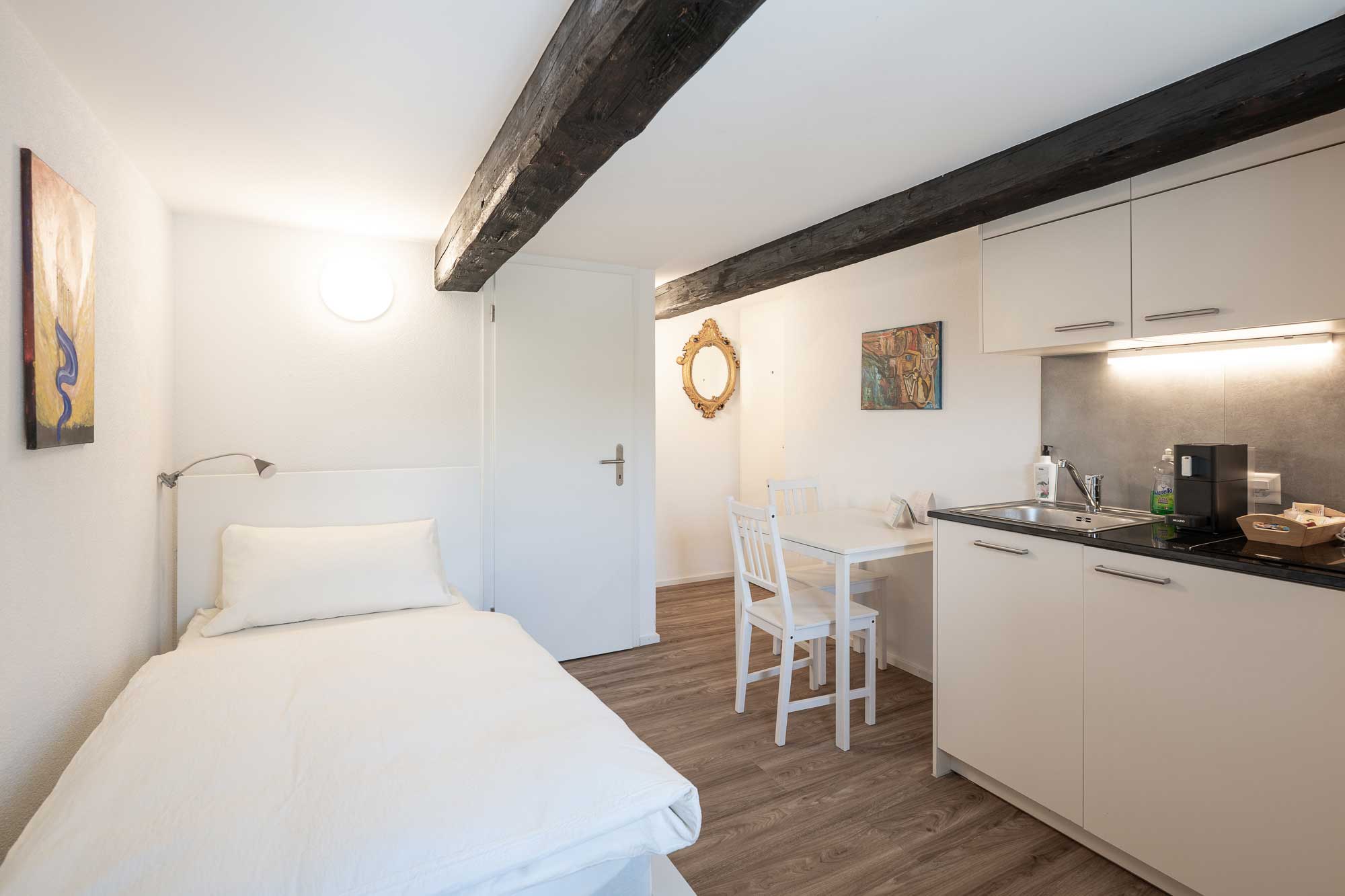 Im historischen Gupfenquartier wurde das Haus „Bären“ 2023 kernsaniert und als Casa M.i.a Flawil Unterkunft neu eröffnet. Acht moderne Studios verbinden Komfort mit Gastfreundschaft – getragen vom Verein M.i.a (Menschlichkeit im Alltag).